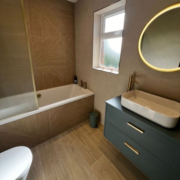 Using: ALL AROUND Concrete Sand Rect. 600×1198 | LOUIE Decor Oak Rect. 600×1200 | LOUIE Oak Rect. 250×1500